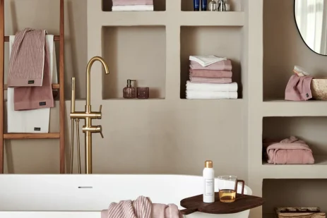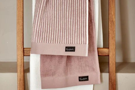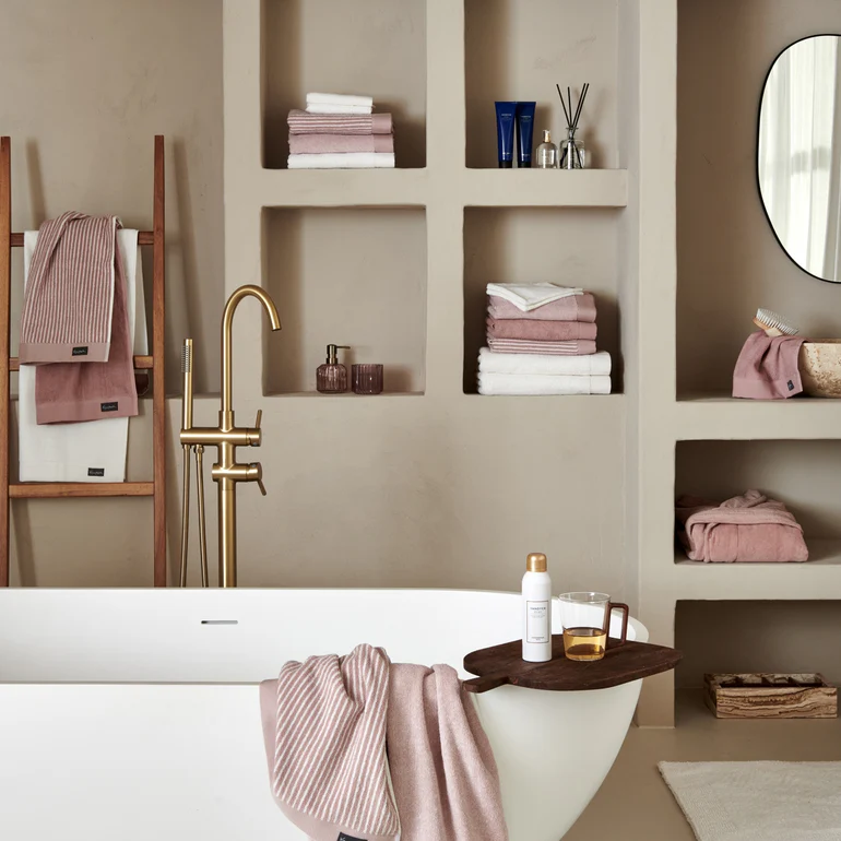 Fallegir og lúxuslegir kantar gefa handklæðinu fágað yfirbragð og gera það að fullkominni blöndu af einfaldleika og glæsileika. Sepia-bleiki liturinn skapar hlýtt og rólegt andrúmsloft sem passar vel inn í flest baðherbergi.