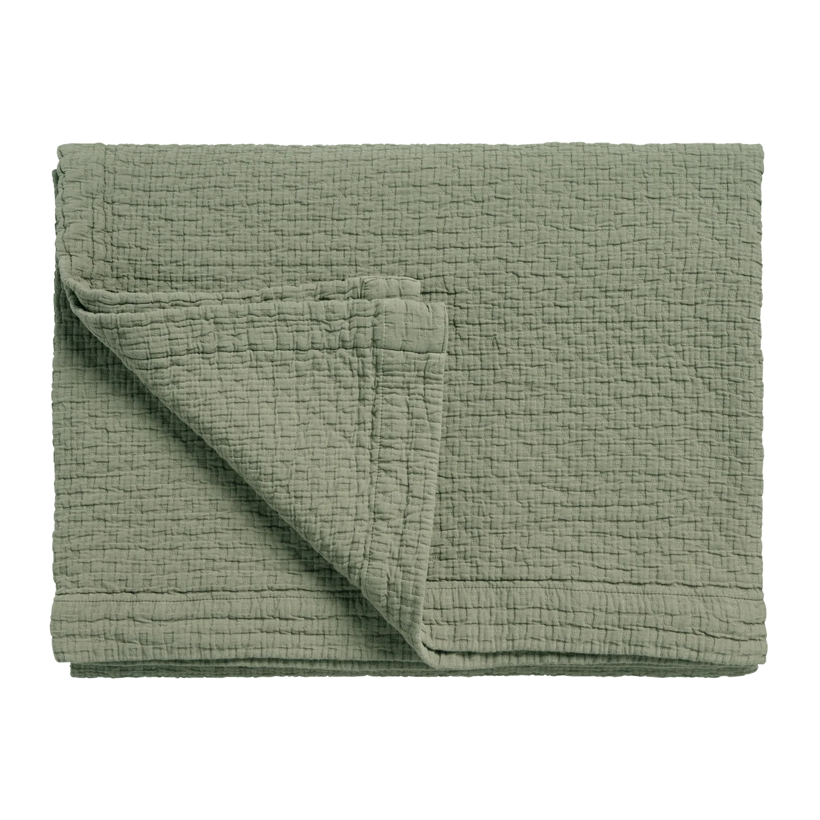 Pure 82 Thyme rúmteppið er fallegt og tímalaust rúmteppi í mjúkum ólífugrænum lit sem færir hlýju og ró inn í svefnherbergið. Teppið er hannað með fallegu, quiltuðu kubbamynstri sem skapar létta og notalega áferð með mjúkri „bumpy“ tilfinningu sem bæði lítur vel út og eykur þægindi.