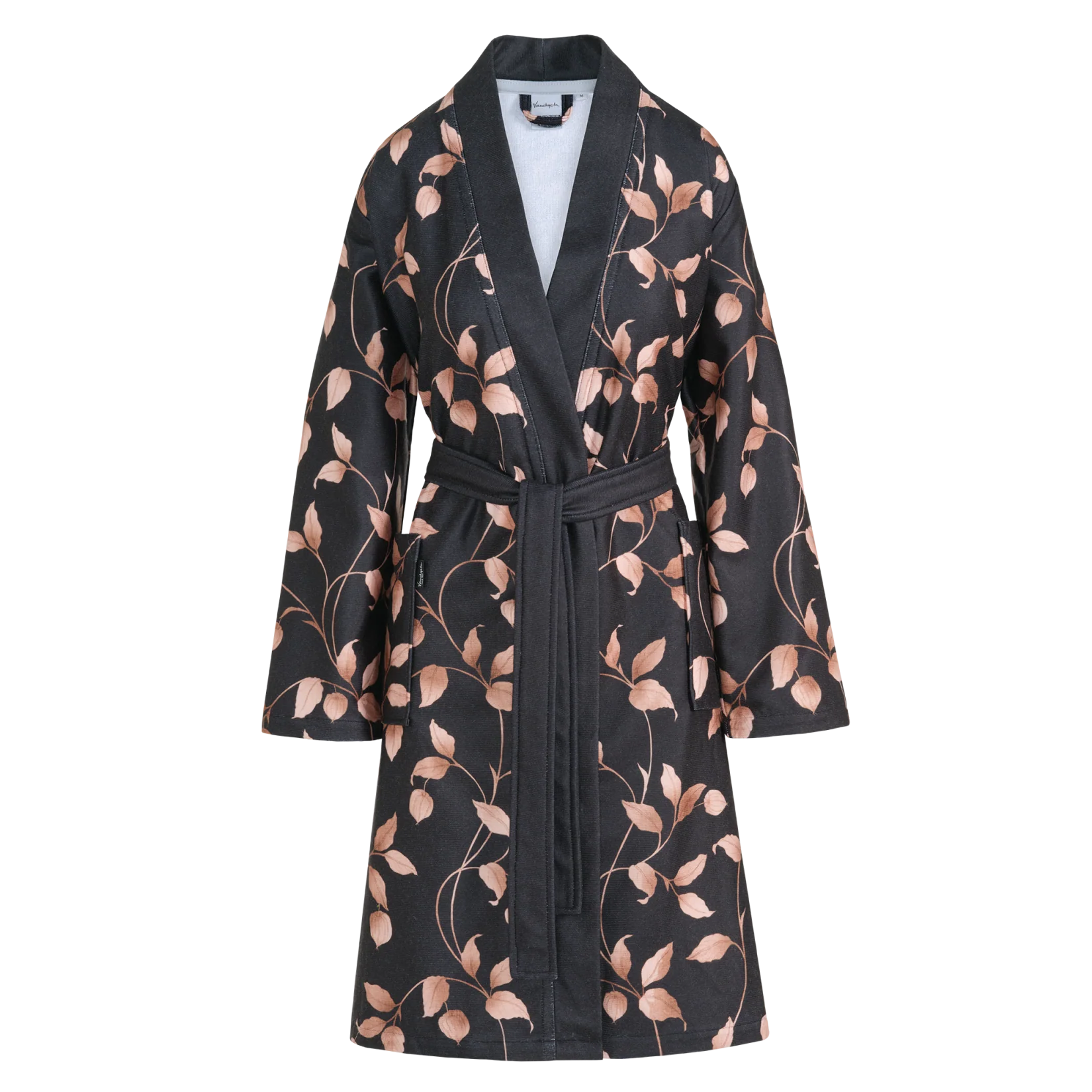 Elena sloppurinn er mjúkur og hlýr. Samsetningin af bambus, bómull og pólýester, skapar léttan en jafnframt rakadrægan slopp.