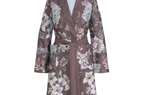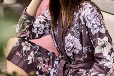 Helena sloppurinn er mjúkur og hlýr. Samsetningin af bambus, bómull og pólýester, skapar léttan en jafnframt rakadrægan slopp. Djúpur brúnfjólublár litur.