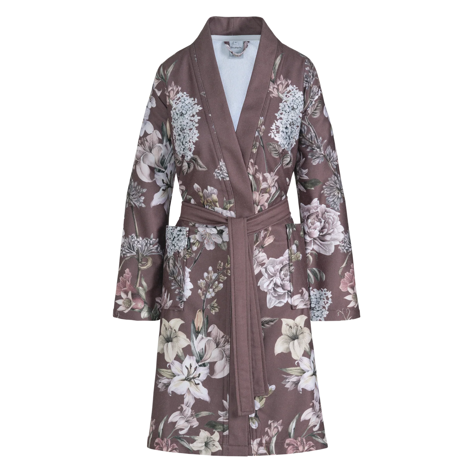 Þessi stílhreini baðsloppur er bundinn með belti.