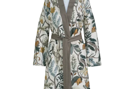Þessi stílhreini baðsloppur er bundinn með belti.